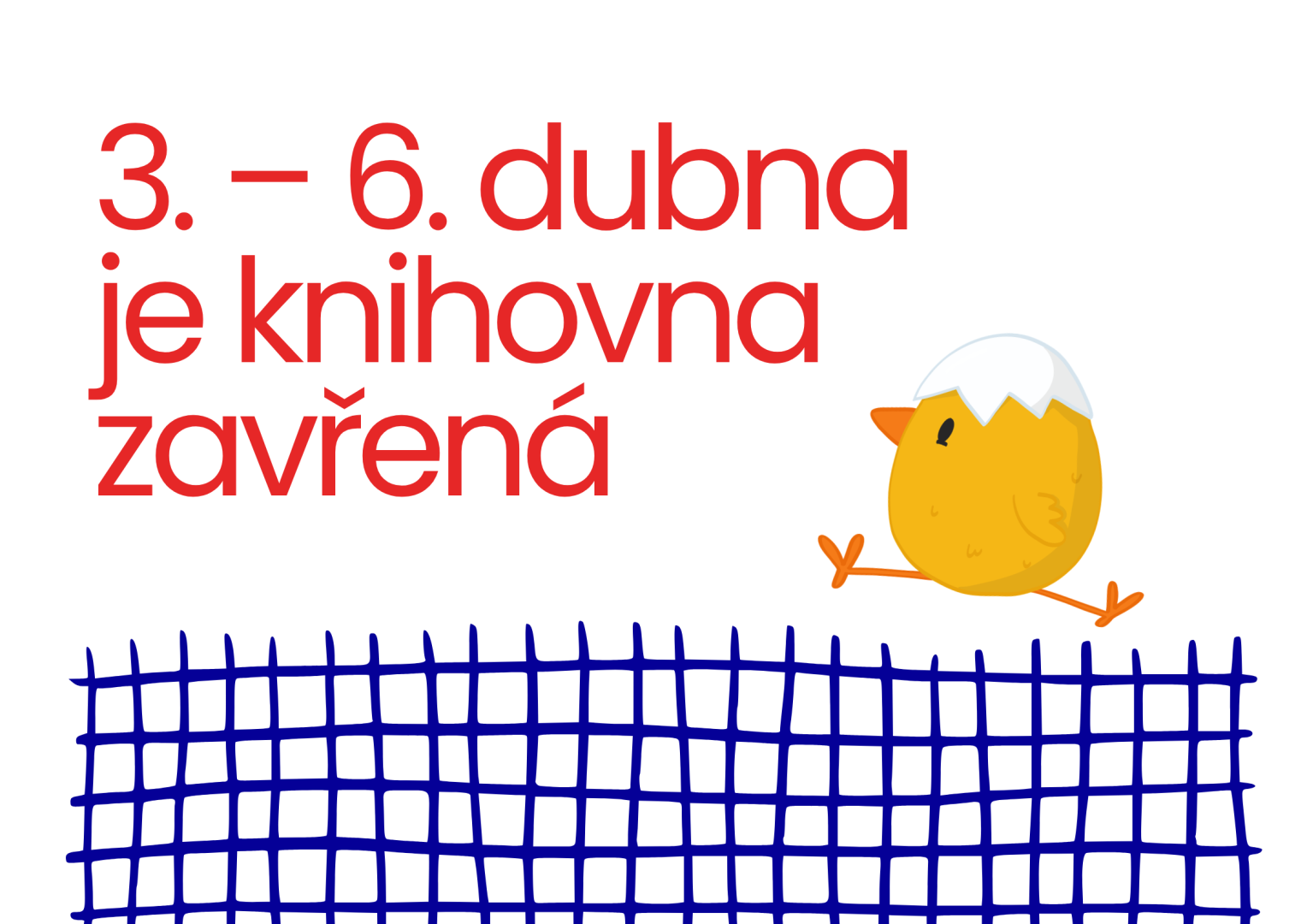 od 3. do 6. dubna máme zavřeno. Zavřená je knihovna i box na vracení knih.